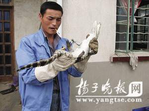 昨天上午,記者接到市民董先生的報料來到了江寧谷里孝義村111號,周國喜正蹲在一個大缸前,旁邊還有幾位村民在指指點點。記者走近一看,只見一只長約80厘米的小鱷魚正在缸底,頭部往上翹,尾部不停地甩動,看上去很緊張。盡管這條小鱷魚給周國喜帶來了不小的損失,可他沒有絲毫的恨意,反倒細心照顧起來。“這個魚塘我一直在養魚,每年2月份和6月份都投放一次魚苗,總共1萬多條,鳊魚、鯽魚都有。”周國喜說,可讓他奇怪的是,產量都不高。周國喜曾研究過多次,可沒有任何結果,這讓他百思不得其解。可就在今年8月份的時候,周國喜在清理魚塘時,突然發現一只小怪物伸出了頭,嘴巴長又尖。“就是它了,我當時確定魚塘產量不高就是因為這只小怪獸。”周國喜告訴記者,他自此開始盯著魚塘,可小怪獸很警惕,大都在魚塘底,很難發現。功夫不負有心人,通過近半個月的觀察,周國喜發現小怪獸喜歡上岸睡覺,不過是在對岸的水花生上面,很難捕捉。“尾巴很長,嘴很尖,身上顏色黃黑相間。”周國喜說第一眼看到小怪獸就覺得像是鱷魚,不過他不敢確認,于是喊來了弟弟,結果弟弟覺得像是國家一級保護動物揚子鱷。