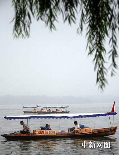 “坐船、坐船,來杭州不坐船可是要遺憾的!”盡管杭州陰雨綿綿,但在西湖斷橋碼頭還是聚集了一大批興致勃勃的中外游客,丁慧軍全然不顧已經濕透的船工服,仍是賣力地吆喝著。熱情的召喚聲很快聚攏了一批游客,面對他們的討價還價,丁慧軍一指手劃船說:“一個小時80元,明碼標價,童叟無欺!