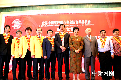 世界中國烹飪聯合會名廚專業委員會今年一月經國家批準,正式注冊,名稱確定為“世界中國烹飪聯合會名廚專業委員會(Famous Chef Committee of the World Association of Chinese Cuisine)”。簡稱“世烹聯名廚委”,作為世烹聯下設的二級機構同樣將辦公場所設在北京。旨在為加強國際中餐廚師的交流,提高中餐烹飪技藝水平及中餐廚師的國際地位。圖為楊柳會長與首屆委員們合影。
