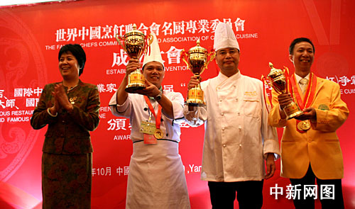 來自韓國、新加坡、荷蘭、日本、美國等10個(gè)國家及地區(qū)的40名廚師,經(jīng)過激烈的角逐,經(jīng)世烹聯(lián)國際評(píng)委分別從“味道”、“質(zhì)感”、“觀感”和“衛(wèi)生”四個(gè)方面,評(píng)出最佳創(chuàng)意獎(jiǎng)、最佳造型獎(jiǎng)各1人和國際中餐廚王金獎(jiǎng)9人、銀獎(jiǎng)12人和銅獎(jiǎng)12人。澳門廚師張志歡、福建廚師胡滿榮、 澳門廚師呂家祥位列前三名,分別榮獲冠軍、亞軍、季軍。同時(shí),臺(tái)北開平餐飲學(xué)校15歲學(xué)生宋浩廷)獲大賽最佳創(chuàng)意獎(jiǎng)、韓國金賢姬獲最佳造型獎(jiǎng)。