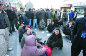 昨天中午,為討薪,圍堵(北京市)大興區世嘉博苑小區大門已兩天的300余名建筑工人,開始向小區內投擲磚頭,并欲強行沖入小區。開發商雇用的保安也動用水槍向工人們噴射。