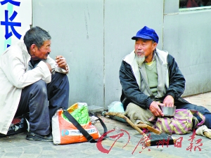 據市民介紹,“候鳥型”職業乞丐相當一部分是頭裹方巾的中年人,身體健康,一般隨身帶著一個三四歲左右的孩子,也有部分殘廢人員。