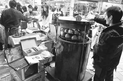 這家攤點的負(fù)責(zé)人李先生說,他們的烤薯攤點是連鎖店,“這種連鎖攤點在成都有10多個,還有至少5家連鎖店面。在北京、上海、綿陽等地還有分店。”他說,連鎖店老板是個臺灣人,使用的是從臺灣引進(jìn)的烤薯方法,比成都市場上的烤薯技術(shù)都要先進(jìn)。李先生拉開烤薯箱,里面擺有幾十個紅薯,還有個圓形的溫度計。“這是專門在臺灣訂制的。”