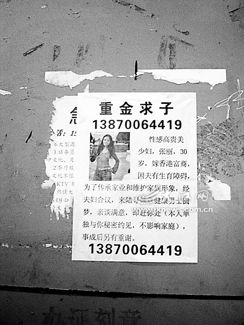 鬧市區離奇廣告:性感美少婦重金求子?騙局!(圖)