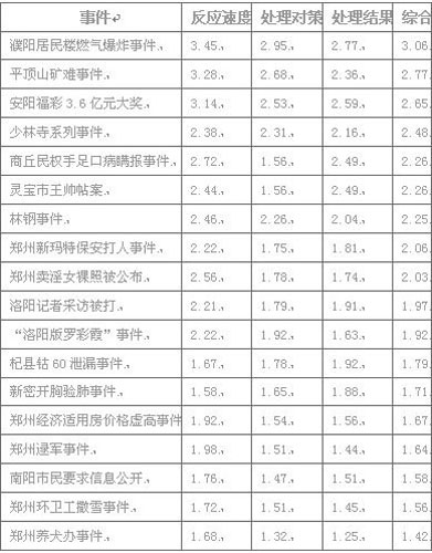 中新網(wǎng)鄭州1月11電(記者 師紅壘)2009年,河南網(wǎng)民都關(guān)心什么,重大事件的處是中,官方的應(yīng)對能力又怎樣。1月 10日,一份由某網(wǎng)站公布的河南《公共事件熱度排行榜》和《官方應(yīng)對能力排行榜》調(diào)查報告,再次引起網(wǎng)民關(guān)注。
