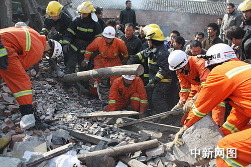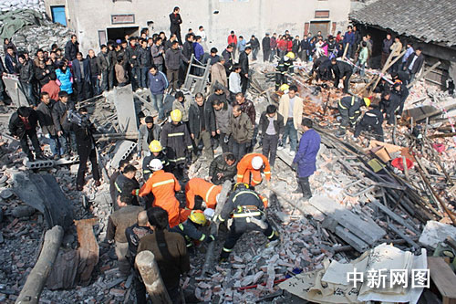 當日下午13時14分,瑞安市消防大隊接到報警后,迅速調集公安現役消防隊及專職消防隊6輛消防車30名指戰員趕到現場實施救援。消防官兵到達現場時,現場一片狼藉,百余平方米的房屋已成為廢墟,現場嘈雜聲混成一片,爆炸現場多處起火,火魔開始向倒塌民房蔓延,而廢墟下面有多條生命等待著救援,現場情況十分危急。消防官兵立即出兩支高壓水槍對火勢進行控制,同時救援小組迅速展開營救。