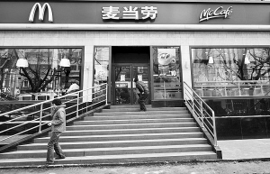 記者于上午8時多趕到現場,事發的這家麥當勞已被封鎖。門前臺階上,站著六七名身著便裝但神情嚴肅的男女,警惕地看著過往行人。見記者靠近,一名自稱是餐廳員工的男士過來阻攔:“今天設備壞了,不營業。”在他的指點下,記者看到玻璃門上貼著一張白紙:因內部設備故障,今天暫停營業。透過窗戶望進去,店里有數人,正在急匆匆交談。記者試著探聽凌晨發生的命案,門口的員工一律回復“不知道”“沒聽說”。