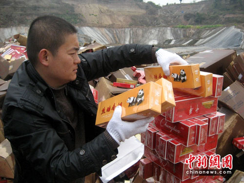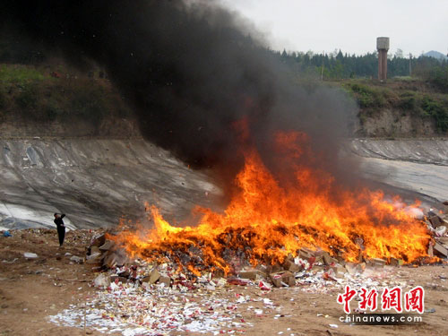 中新網綿陽3月30日電 (楊超)30日,伴隨著烈火濃煙,38600條假煙灰飛煙滅。這是2008年4月以來,四川綿陽市煙草專賣部門舉行的首次集中銷毀假煙行動。