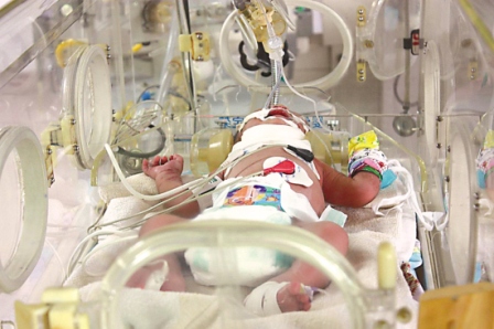 在三水人民醫院住院部六樓新生兒監護站,男嬰躺在一臺育嬰箱內,全身插滿管線以維持呼吸。他塊頭正常,只是皮膚略黃,身上多處用紗布包纏住,手腕處數條痕跡非常醒目,左腋下一片通紅。只見男嬰雙眼緊閉,時不時地還會手腳亂動!靶『⒆铀埠軣┰辏允帜_才會亂動”,一旁的女護士告訴羊城晚報記者,目前男嬰生命體征稍有好轉。