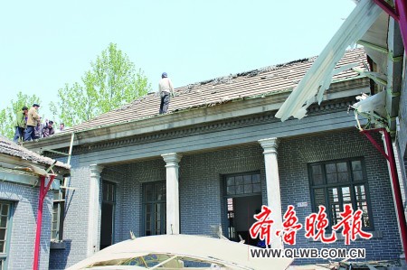 4月30日上午,濟(jì)南市中山公園東片區(qū)拆遷工作在緊張進(jìn)行。經(jīng)四路343號大院里,有幾個人翻墻入院爬到屋頂上揭瓦,濟(jì)南市體育局所屬的濟(jì)南市民體質(zhì)監(jiān)測中心工作人員正在阻止他們上到房頂揭瓦。“下面屋子里還有人呢,怎么就這么拆房啊?”
