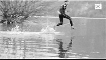 網(wǎng)上文章稱(chēng):“3名外國(guó)小伙在一個(gè)視頻里把中國(guó)武俠小說(shuō)里的輕功 ‘水上漂’展現(xiàn)得淋漓盡致。視頻中,他們?cè)谄咸蜒酪粋(gè)湖上賽跑,在水面上奔跑了50多米后才落水。他們聲稱(chēng)這是一種挑戰(zhàn)地心引力理論的新型極限運(yùn)動(dòng)。視頻上傳到某網(wǎng)站后,在短短兩周內(nèi)吸引了超過(guò)200多萬(wàn)人次瀏覽。視頻看起來(lái)可信度極高,不少質(zhì)疑它是騙局的網(wǎng)友也不得不承認(rèn),它拍得很高明!