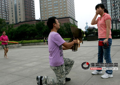 今日(6月1日)11點59分,女友到了。王樂捧著玫瑰走向女友,單膝下跪,對女友說:“老婆,嫁給我吧,我會用一生來好好照顧你,讓你幸福。”兩人隨后擁抱在了一起。有意思的是,胡安萱看上去大大方方,王樂卻始終有些害羞。