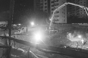 當天凌晨1時許,記者來到該施工工地上,該工地開著明亮的燈光,挖出了三四米深的地基,一輛混凝土攪拌車發出“哐哐”的響聲,數十名工人正在地基上鏟水泥。凌晨1時20分許,市城管支隊特勤大隊的執法人員趕赴現場,要求施工方立即停工。“我們和這些混凝土公司預約好了,一停工會損失很多錢。”施工方一名負責人與執法人員求情。執法人員告知,目前屬于中考高考階段,決不允許建筑工地超時施工影響學生和周邊居民休息。執法人員當場責令正在趕工的混凝土攪拌車退出施工地點。