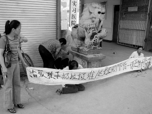 為討一個(gè)說法,吳麗華的兩個(gè)姐姐拉起橫幅,跪在康華醫(yī)院門口痛哭,要求醫(yī)院解釋藏尸一事。