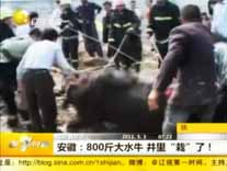 安徽:800斤的大水牛貪吃井邊草 栽進井里