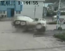 實拍:水泥槽罐車撞壓私家車
