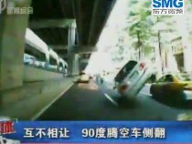 實拍:兩車互不相讓 90度騰空車側(cè)翻