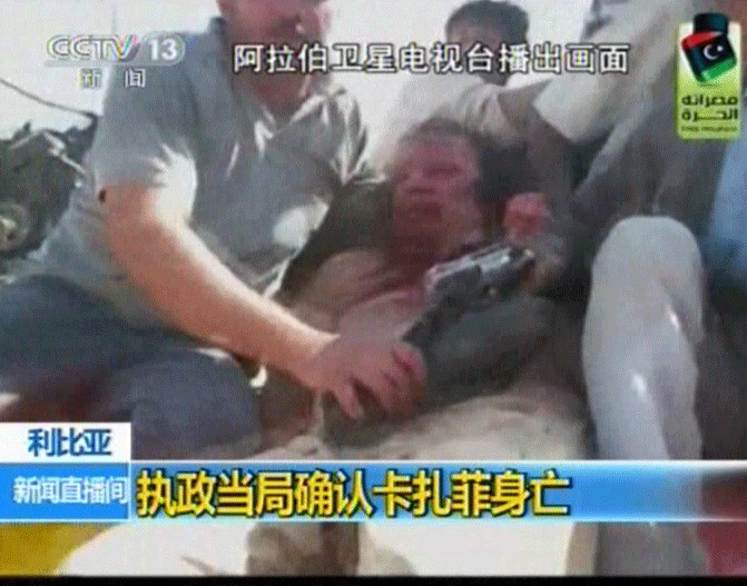 卡扎菲被殺后還沒有下葬,其遺體被放肉鋪冷藏室,不少民眾排隊觀看。