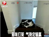 貓咪打架勢均力敵 最終氣勢定輸贏