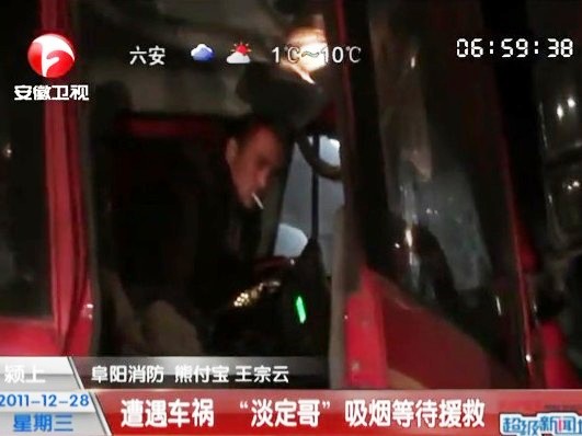 遭遇車禍 “淡定哥”吸煙等待救援
