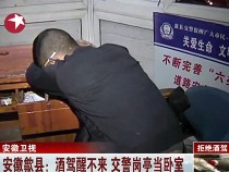 酒駕司機爛醉如泥 把交警崗亭當臥室