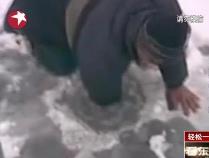 另類捕魚 直接把手臂伸進冰窟窿當魚鉤
