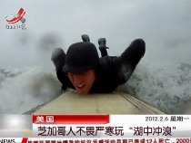 沖浪愛好者不畏嚴寒在冰湖中玩沖浪