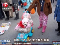 幸福狗狗上了年紀 主人嬰兒般呵護推車遛狗