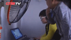 美女主持人直播球賽 被足球砸中腦袋