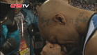 美女主持人直播球賽 被足球砸中腦袋