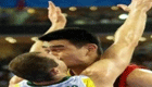美女主持人直播球賽 被足球砸中腦袋