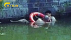 男子發現鴨子被凍湖面 跳湖破冰救援