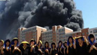 學校隔壁起大火 學生拍照作背景