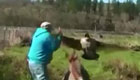 實拍:大叔喂驢 鵝嫉妒發起攻擊