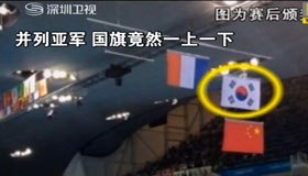 孫揚頒獎出意外 中韓國旗一下一上