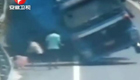 貨車側翻瞬間妻子推開丈夫抱起孩子