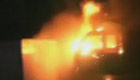 "海葵"來襲 電線被吹斷起火燒毀路邊汽車