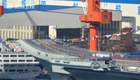 中國航母平臺懸掛滿旗鋪紅毯
