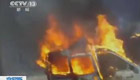 實拍懷化側翻槽罐車再次發生閃燃