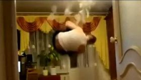 拍客:傻缺男客廳練空翻踢碎吊燈