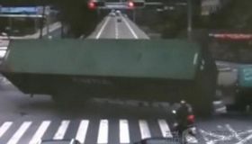 拍客:大卡車側翻男子逃生