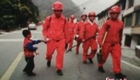 蘆山地震災區首所帳篷學校開學 學生冒雨早到