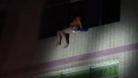 女子與家人爭吵后跳樓 居民圍觀