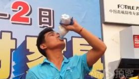 男子為促銷當眾喝油漆