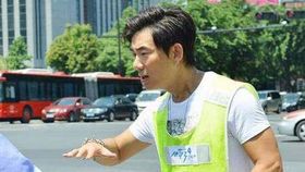 任賢齊穿綠馬甲勸導行人過馬路