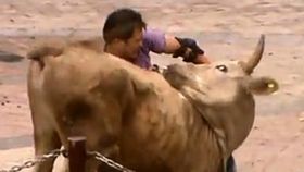 猛男3秒撂倒800斤大公牛