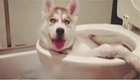 呆萌哈士奇 躺進馬桶當私人浴缸