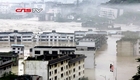 四川成都:四川遭遇特大暴雨襲擊——鐵駁船“卡殼”寶成鐵路橋