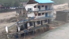 四川成都暴雨 鐵駁船“卡殼”寶成鐵路橋