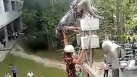 男子發現鴨子被凍湖面 跳湖破冰救援